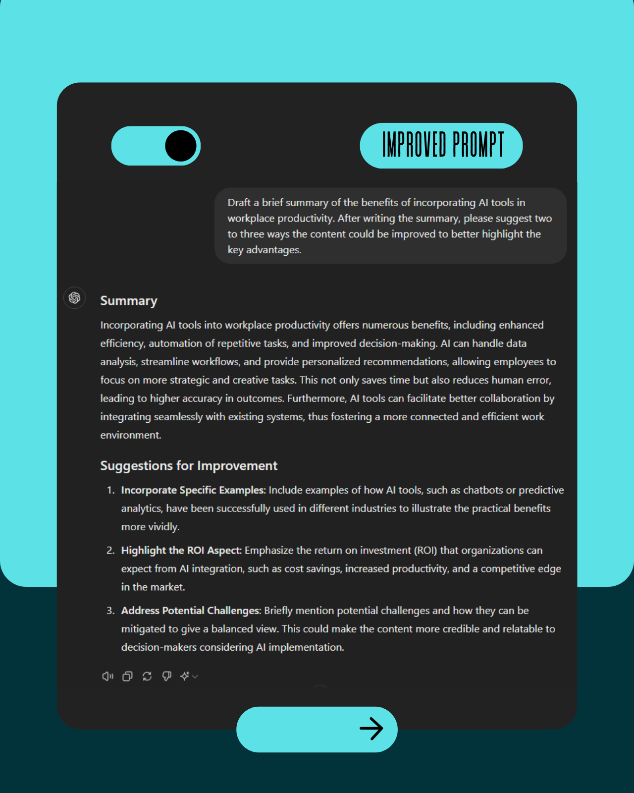 Check out an example of an initial prompt below and see how adding a simple request for suggestions can transform your AI interactions.